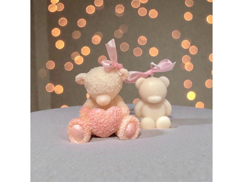 Sojová svíčka medvídek se srdíčkem a mašličkou